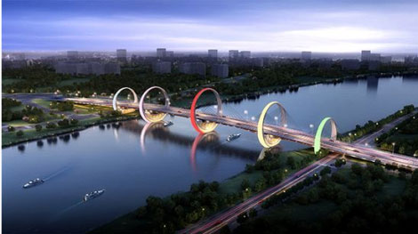 紅壁巖大橋設(shè)計(jì)理念——玉璧連環(huán)(全橋首座鋼圓環(huán)主塔斜拉橋)